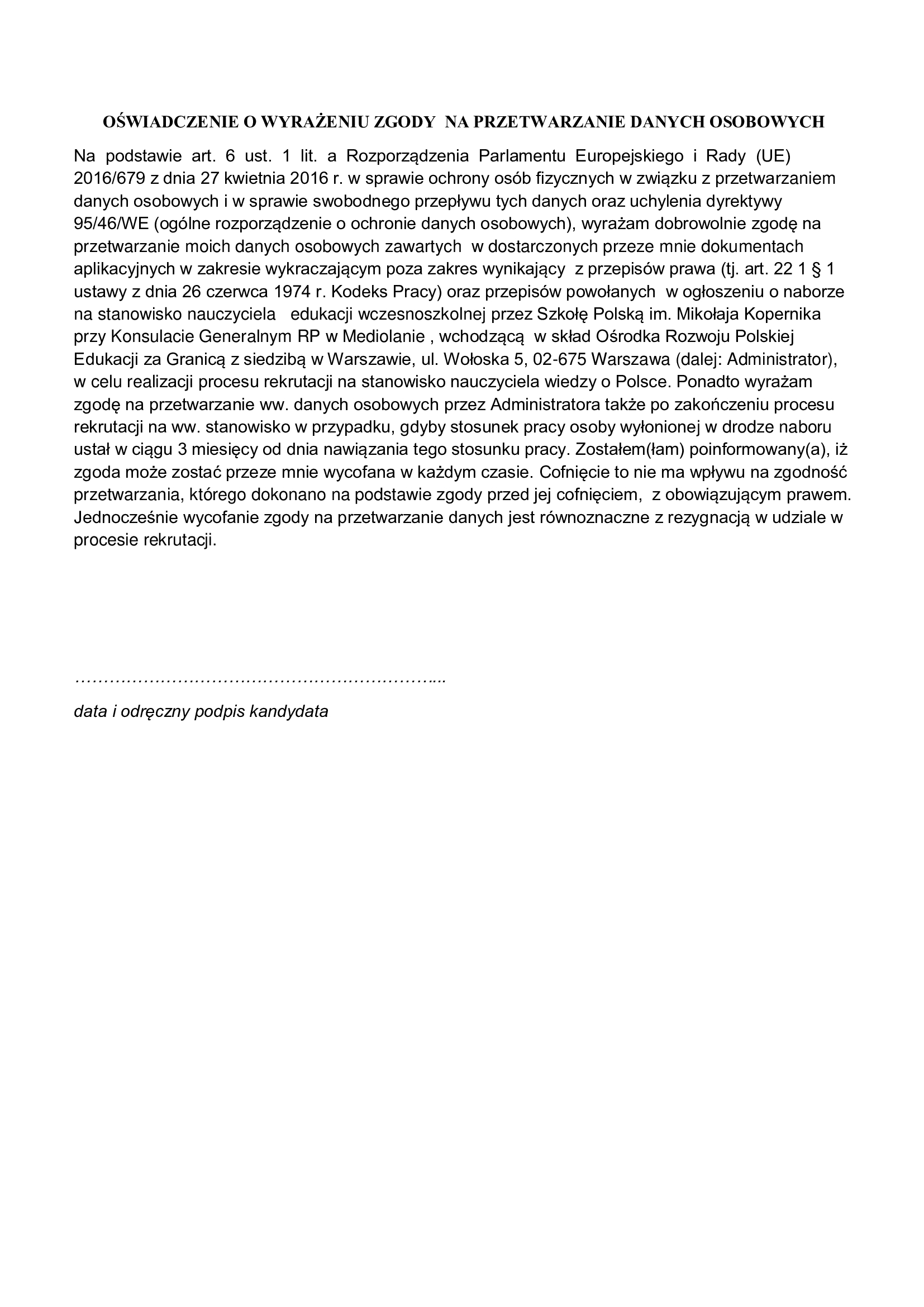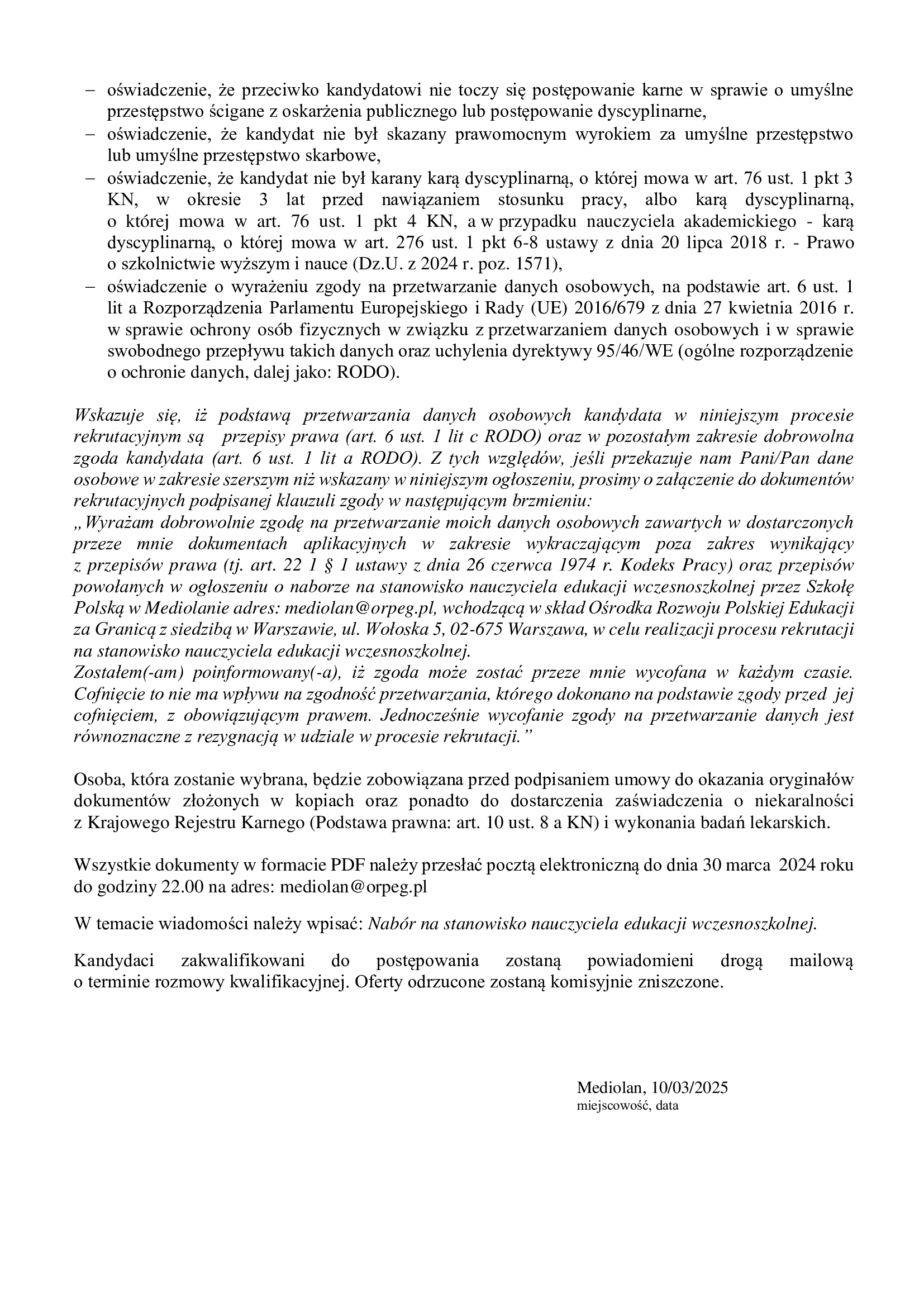 Nabór na stanowisko nauczyciela edukacji wczesnoszkolnej