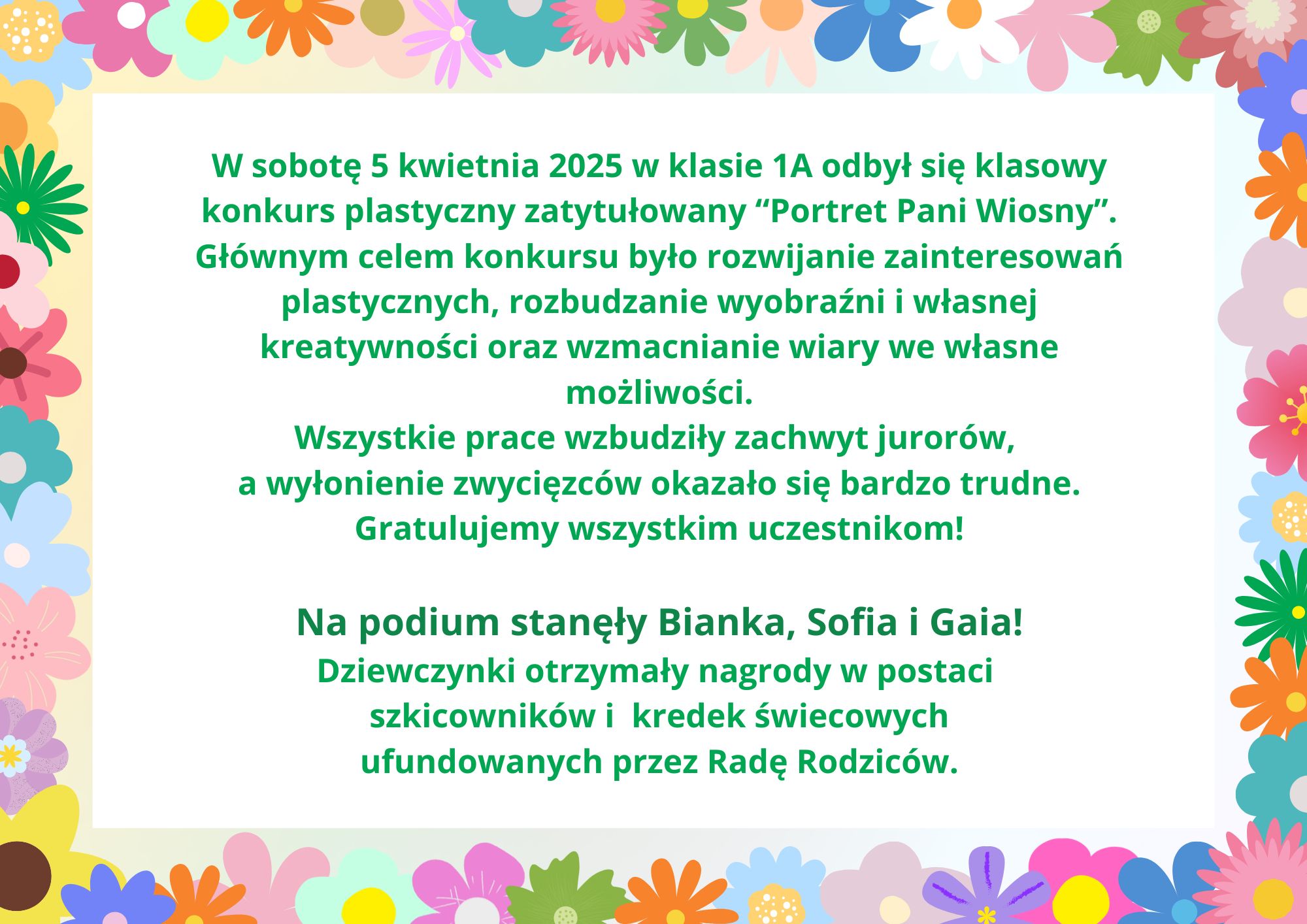 Konkurs plastyczny „Portret Pani Wiosny” w klasie 1A